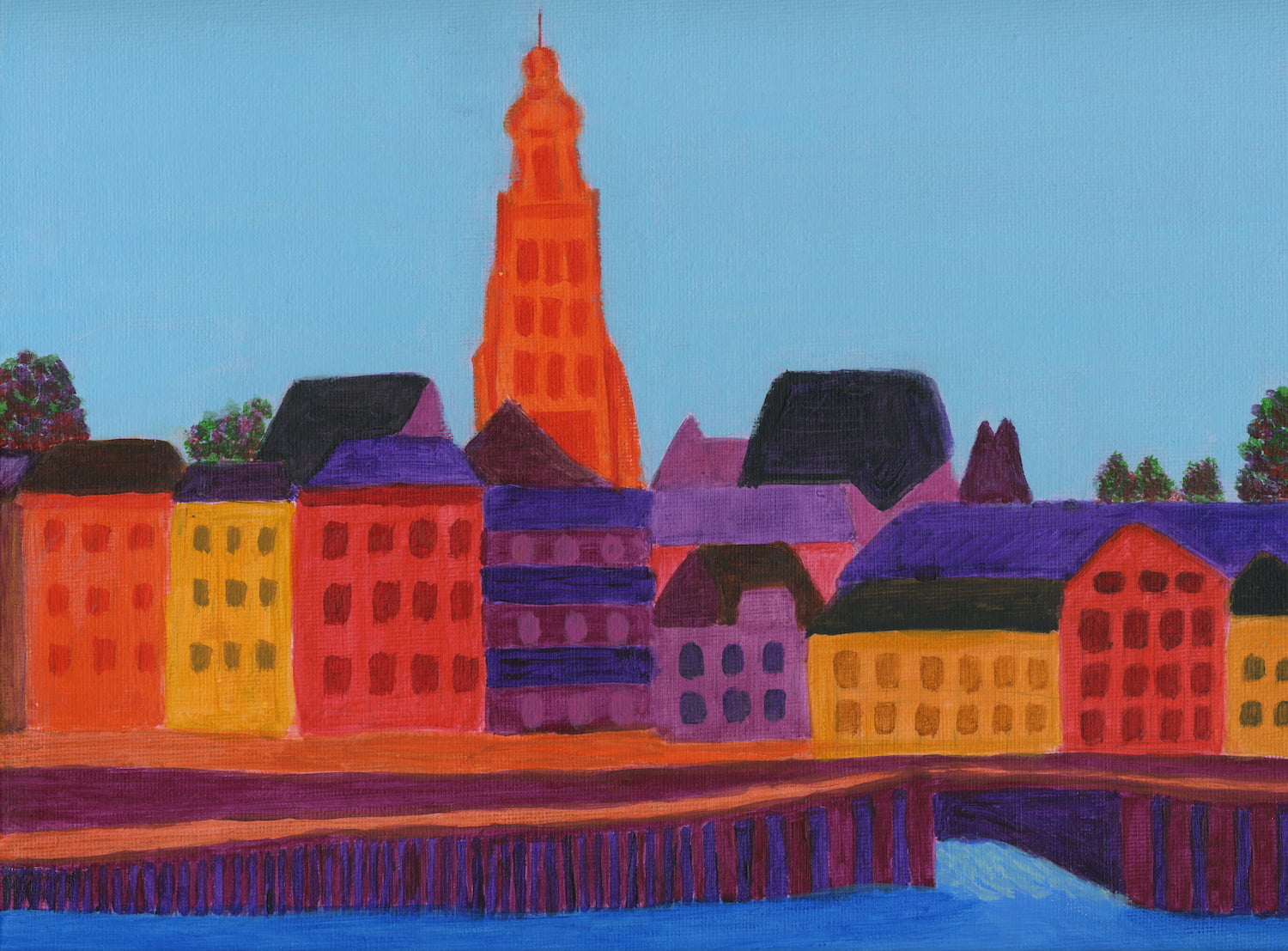 A high-quality reproduction of the original painting capturing the historic quay in Zutphen. This fine art print brings architectural elegance and atmospheric depth to your space.